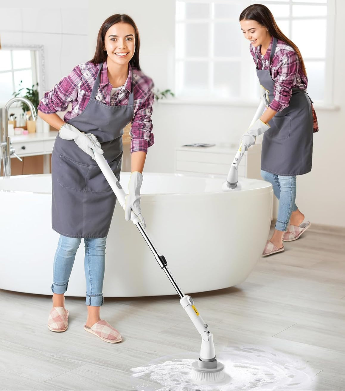 Para nada. El motor giratorio hace todo el trabajo por ti. Solo tienes que guiar el cepillo por la superficie y dejar que actúe. ¡Adiós al restregado manual!